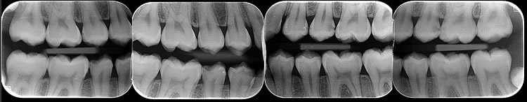 O exame radiográfico interproximal é realizado através de um sensor ( 3 cm X 4 cm) para a visualização das coroas, terço
